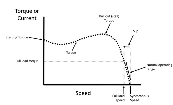 โดยธรรมชาติของมอเตอร์ชนิดนี้จะทำงานหรือหมุนได้นั้นจะต้องอาศัยหลักการเหนี่ยว ซึ่งอาศัยความเร็วที่แตกต่างกันระหว่างความเร็วของโรเตอร์ กับความเร็วสนามแม่เหล็กหมุนที่คำนวนได้จากสมการ Ns = 120 *F / P