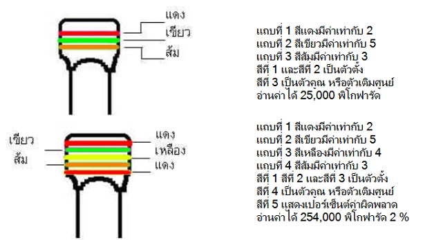 อักษรตัวที่ 1 ค่าความผิดพลาด (%) อักษรตัวที่ 2 อัตราทนแรงดัน (VDC) D 5 A 50 F 1 B 125 G 2 C 160 H 2.5 D 250 J 5 E 350 K 10 G 700 M 20 H 1,000