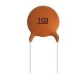 - ตัวเก็บประจุเซรามิค Ceramic Capacitorsตัวเก็บประจุชนิดนี้จะมีขนาดเล็ก ไม่มีขั้ว ค่าความจุต่ํา อยู่ในช่วง พิโก - นาโน (pF - nF ) มีค่าไม่เกิน 1 ไมโครฟารัด แต่โดยทั่วไปจะใช้งานที่แรงดันที่ 50V 100V 1000V ขึ้นอยู่กับขนาดของคาปาซิเตอร์