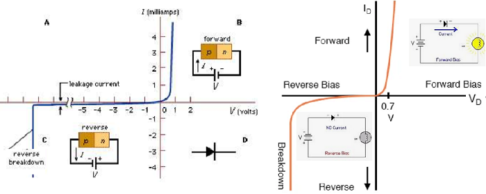 จากที่ได้กล่าวมาในตอนต้นนั้น เราสามารถที่จะทำการเขียนกราฟเพื่อแสดงถึงความสัมพันธ์ระหว่างค่าแรงดัน และค่าของกระแส ของอุปกรณ์ไดโอดในทางอุดมคติ (Ideal Diode) ได้ ดังแสดงในรูป