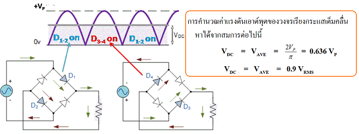 การทำงานวงจรเรียงกระแสเต็มคลื่นแบบบริดจ์