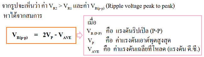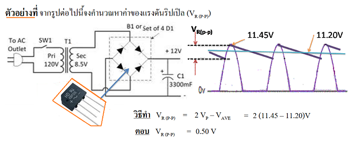 (ซึ่งในการแปลงไฟสลับเป็นไฟตรงจะไม่ต้องการหรือต้องการให้มีคลื่นนี้น้อยที่สุด) ดังนั้นแรงดันริปเปิลจึงควรถูกขจัดออกไป