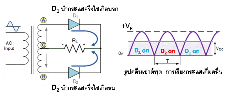 วงจรเรียงกระแสเต็มคลื่นแบบใช้หม้อแปลงมีแท็ปกลาง