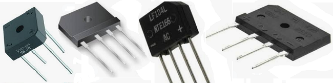 ตัวอย่างไดไอด 4 ตัว ที่ประกอบผนึกเข้าด้วยกันเพื่อเป็นวจรเรียงกระแส