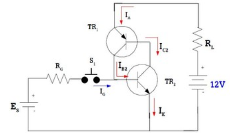 รูปซ้ายมือ: แสดงวงจรของ SCR ในแบบโมเดลที่ใช้ทรานซิสเตอร์