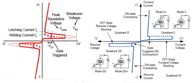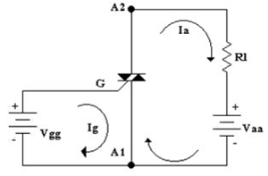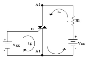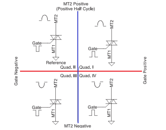 3.สภาวะที่ 3 หรือควอนแดรนด์ที่ 4จ่ายแรงดันลบให้ขา A2 จ่ายแรงดันบวกให้ขา A1 แต่ จ่ายแรงดันบวกกระตุ้นขา G จะเกิดการนำกระแสในตัวไตรแอคดังรูป
