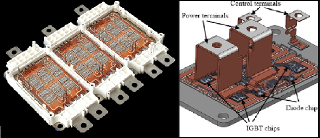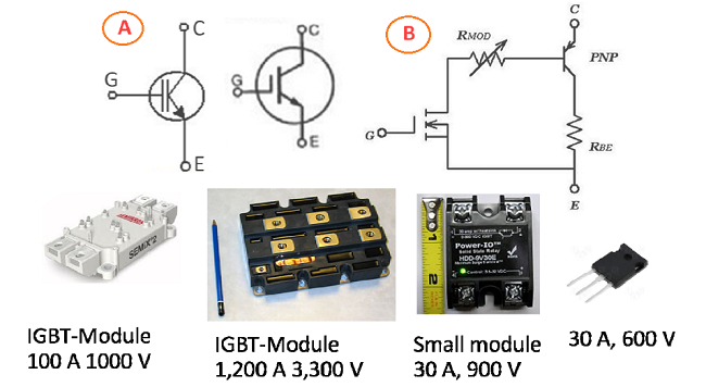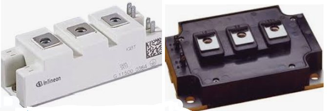 รูปล่าง คือตัวอย่าง IGBT ขนาดต่างๆที่มีพิกัดแรงดันและพิกัดกระแสใช้งานที่แตกต่างกัน