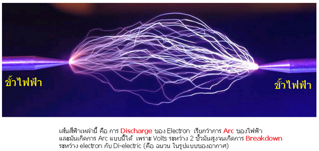 Arc คือ ลักษณะทางกายภาพที่เรามองเห็นการ Flow ของ Electron จากการ discharge เข้าหากันระหว่างขั้ว 2 ขั้ว หรือ วิ่งลงดิน