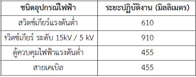 ระยะปฏิบัติงานที่เหมาะสมกับชนิดอุปกรณ์ไฟฟ้า