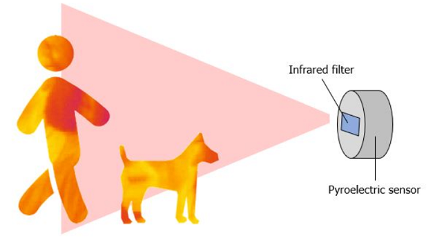 Pyroelectric sensor เป็นเซ็นเซอร์ตรวจจับที่ไวต่อการตรวจจับการเปลี่ยนแปลงของอุณหภูมิอย่างมาก โดยเซ็นเซอร์จะมีเลนส์และเซ็นเซอร์ที่คอยตรวจจับอยู่ภายใน และเมื่อมีสิ่งมีชีวิตที่มีความร้อน อาทิ คน หรือสัตว์ ซึ่งมีคลื่นอินฟราเรดหรือคลื่นความร้อนอยู่ในร่างกายเป็นปกติอยู่แล้วมาผ่านหน้าเซ็นเซอร์ เซ็นเซอร์ก็จะอ่านการเปลี่ยนแปลงว่าอุณหภูมิมีการเปลี่ยนแปลงจากสภาพแวดล้อมรอบข้างอย่างรวดเร็ว โดยเซ็นเซอร์จะแปลงสัญญาณเหล่านี้เป็นสัญญาณดิจิทัลเพื่อส่งคำสั่ง