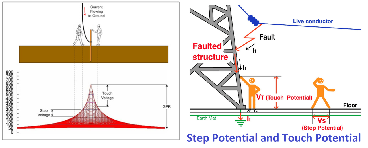 กรณีเมื่อเกิดฟ้าผ่า หรือเกิตฟอล์ทขึ้นในระบบไฟฟ้า เช่นสายไฟฟ้าเส้นที่มีไฟขาดตกลงสู่พื้น โครงสร้างเสาไฟฟ้า รถยนต์ หรืออื่นๆ ก็จะส่งผลทำให้กระแสไฟฟ้าไหลลงสู่พื้นดิน ซึ่งการแพร่กระจายของศักดิ์ไฟฟ้าหรือแรงดันไฟฟ้าในแต่ละจุดก็จะไม่เท่ากัน โดยขึ้นอยู่กับค่าความต้านทานของกระแสไฟฟ้าที่จุดนั้นๆ ดังนั้นในแต่จะจุดแต่ละตำแหน่งก็จะมีแรงดันไม่เท่ากัน ดังนั้นคนหรือสัตว์ยืนหรือนอนราบก็จะเกิดความต่างศักดิ์ไฟฟ้าขึ้นระหว่างสองจุดและทำให้เกิดกระแสไหลผ่านร่างกาย ซึ่งเป็นไปตามหลักการและทฤษฏีดังต่อไปนี้