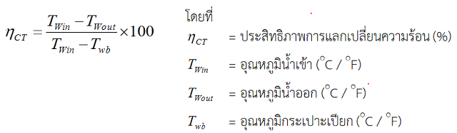 )หมายถึง อัตราส่วนระหว่างผลต่างของน้้าเข้าและออกจากหอผึ่งน้้า กับผลต่างระหว่างอุณหภูมิน้้าเข้าหอผึ่งน้้าและอุณหภูมิกระเปาะเปียกของอากาศ