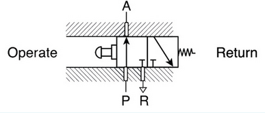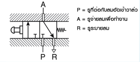 วาล์วควบคุมทิศทางแบบ 3/2 ปกติปิด (3/2 Valve Normally Closed) วาล์วควบคุมทิศทางแบบ 3/2 ปกติเปิด (3/2 Valve Normally Open) |