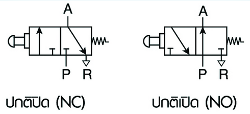 วาล์วควบคุมทิศทางแบบ 2/2 ปกติปิด (2/2 Valve Normally Closed) วาล์วควบคุมทิศทางแบบ 2/2 ปกติเปิดm(2/2 Valve Normally Open) |