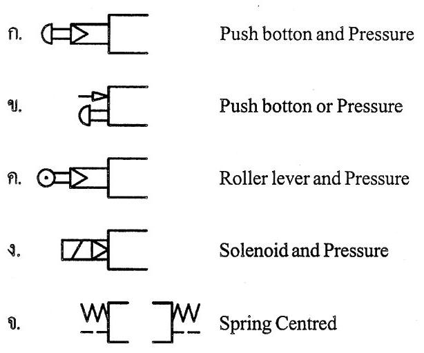 1.การเลื่อนลิ้นโดยใช้มือหรือเท้า (Manual Actuator)ก.ใช้ก้ามเนื้อในการเลื่อน (ปุ่มกด) แบบทั่วไปข.ใช้มือกด (ปุ่มกด)ค.ใช้คันโยกหรือมือบิดง.ใช้เท้าเหยียบจ. ใช้คันโยกหรือมือบิดแบบล็อกตำแหน่ง |