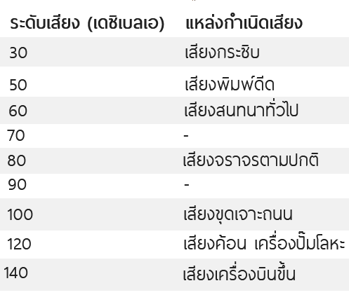 2. ได้รับเสียงวันละ 7-8 ชั่วโมง ต้องมีระดับเสียง ติดต่อกันไม่เกิน 90 เดซิเบล(เอ)