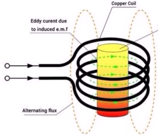 ขดลวด เนื่องจากว่าโลหะทุกชนิดมีค่าความต้านทานไฟฟ้า กระแสไฟฟ้าที่ไหลในโลหะจึงทำให้เกิดความร้อนขึ้น ความร้อนที่เกิดขึ้น คือ พลังงานไฟฟ้าที่ถูกถ่ายทอดออกไปเป็นความร้อนในชิ้นโลหะนั่นเอง