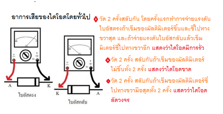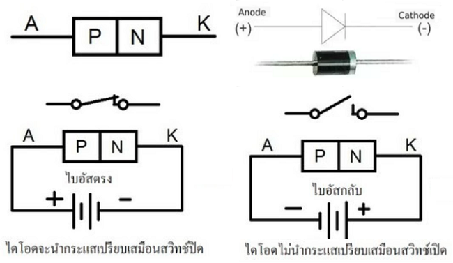 โครงสร้างของไดโอดประกอบด้วยสารกึ่งตัวนำชนิด P และชนิด N นำมาต่อกัน ซึ่งก็จะมี 1 รอยต่อ ระหว่างสารกึ่งตัวนำทั้งสอง และจะมีขาที่ออกจากสารกึ่งตัวนำสอง โดยขาที่ต่อยู่กับสารกึ่งตัวนำชนิด P จะเรียกว่า อาโนด (A) และขาที่ออกจากสารกึ่งตัวนำชนิด N เรียกว่า คาโถด (K)