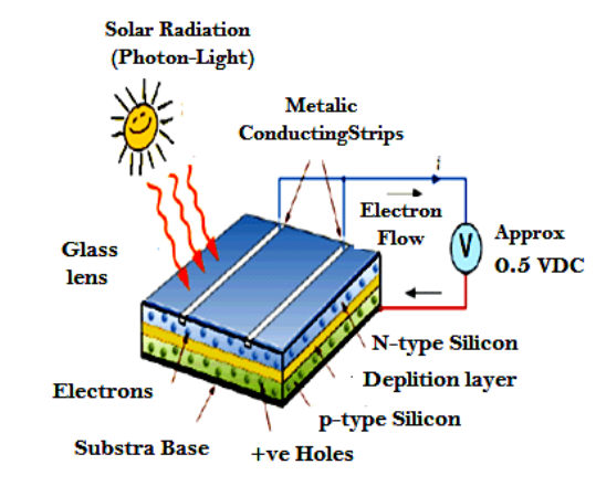 ซึ่งในแผงโซล่าเซลล์นั้นจะประกอบด้วย เซลล์แสงอาทิตย์ มีหน้าที่หลักคือ รับแสงอาทิตย์แล้วเปลี่ยนให้เป็นพลังงานไฟฟ้ากระแสตรง DC โดยหลายคนอาจจะกำลังเข้าใจผิดว่าแผงโซล่าเซลล์นั้น ต้องการแค่ความร้อนเฉยๆ เพื่อเปลี่ยนให้เป็นพลังงานไฟฟ้า แต่จริงๆ แล้วแผงโซล่าเซลล์นั้นต้องการแสงแดดจากแสงดวงอาทิตย์ เนื่องจากแสงแดดนั้นประกอบด้วยกลุ่มพลังานที่เรียกว่าโฟตอน ( + ) และเมื่ออนุภาคโฟตอนเหล่านี้ไปตกกระทบกับแผงโซล่าเซลล์ จะทำให้เซลล์แสงอาทิตย์ที่อยู่ภายในแผงนั้นปล่อยอิเล็กตรอน ( –) ออกมา ดังนั้นในช่วงเวลาที่มีเมฆมากหรือฝนตก การผลิตไฟฟ้าก็จะน้อยลงเป็นเรื่องปกติ