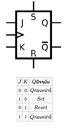 เจเคฟลิปฟล็อป (JK flip-flop) จะมีอินพุตสามตัว คือ J, K และ C (clock)