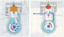เครื่องยนต์หากแยกประเภทตามกลวัตรการทำงานของเครื่องยนต์ก็จะแยกเป็นเป็นสองประเภทคือ เครื่องยนต์ 2 จังหวะ (2 Stroke engine) และ เครื่องยนต์ 4 จังหวะ (4 Stroke engine ) แต่ในหัวข้อนี้จะอธิบายการทำงานของเครืองยนต์สองจังหวะดังนี้ เครื่องยนต์สองจังหวะ (Two Stroke Engine)