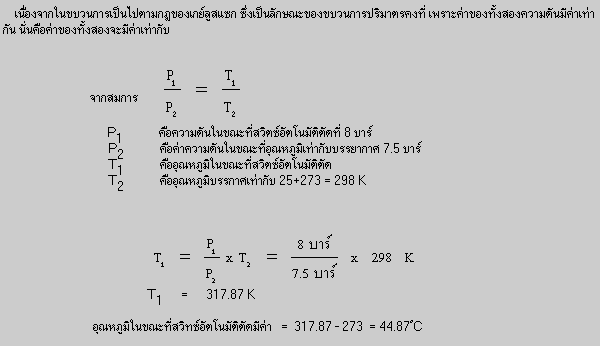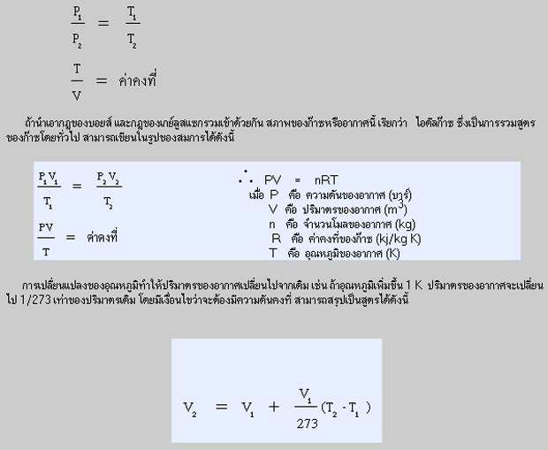 กฎของเกย์ลูสแซก กล่าวไว้ว่า ถ้าปริมาตรคงที่ในขณะที่ก๊าซ หรืออากาศจำนวนหนึ่งมีการเปลี่ยนแปลงสภาพ ความดันจะแปรผันตรงกับอุณหภูมิสัมบูรณ์ สามารถเขียนสมการได้ดังนี้