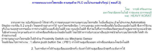 การออกแบบวงจรไฮดรอลิก ควบคุมด้วย PLC บนโปรแกรมสำเร็จรูป ( ตอนที่ 2)