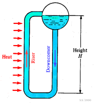 น้ำนเวียนจาก steam drum ผ่านลงทาง downcomer เข้า bottom header ขึ้นทาง water tubes หรือ risers กลายเป็นไอบางส่วน แล้วกลับสู่ steam drum ทั้งนี้จะออกแบบไม่ให้เกิดการเดือดจนเป็นไอ 100% ในท่อ เพื่อป้องกันปัญหาความเสียหายจากท่อละลายหรือ burnout จากผลของ departure from nucleate boiling (DNB) ความหนาแน่นของน้ำใน มากกว่า two-phase mixture ใน risers |