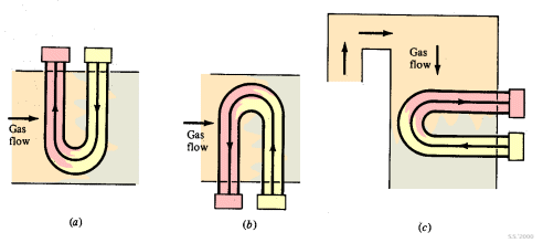 ผังแสดงซูเปอร์ฮีทเตอร์และรีฮีทเตอร์แบบ (a) ห้อย (b) กลับ (c) แนวนอน