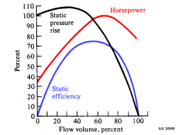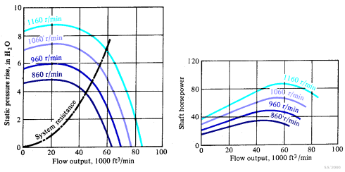 รูปกราฟสมรรถนะทั่วไปของพัดลมแบบหนีศูนย์กลาง แสดงผลของการแปรค่าความเร็ว