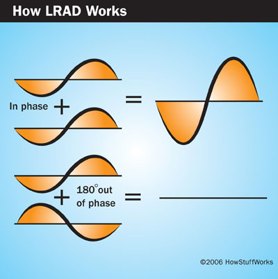 จากเหตุการณ์การโจมตี เรือ USS Cole ในปี 2000 [โดยผู้ก่อการร้ายได้ขับเรือเล็กบรรทุกระเบิดพุ่งเข้าชนเรือ] รัฐบาลสหรัฐอเมริกาจึงได้ให้ทุน 40 ล้านเหรียญ แก่ บริษัท American Technology Corporation (ATC) เพื่อคิดค้นอุปกรณ์ป้องกันเหตุการณ์การโจมตีในลักษณะต่างๆ ซึ่งนวัตกรรมที่ได้มาก็คือ LRAD (Long Range Acoustic Device) เพื่อใช้เตือนและผลักดันไม่ให้เรือเข้ามาใกล้เรือ แรกเริ่มกลุ่มลูกค้ากลุ่มแรกๆ คือ เรือลำใหญ่ เรือรบ เรือบรรทุกน้ำมัน จนมาถึงเรือยอร์ชใช้เพื่อผลัดดันเรือโจรสลัดที่เข้ามาใกล้ มีการติดตั้งบนรถฮัมวี่ ใช้ในภาระกิจของตำรวจ หน่วยสวาท ทั่วทั้งยุโรปและอเมริกา LRAD เป็นเครื่องมือเชิงป้องกัน,ผลักดัน,สื่อสาร ไม่เป็นเครื่องมือสำหรับการทำลายล้าง