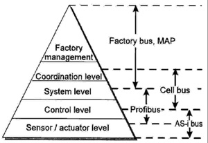 | ระดับที่ 5 : | Sensor actuator level เป็นระดับของอุปกรณ์ทำงานและเซนเซอร์ซึ่งเป็นระดับล่างสุด |