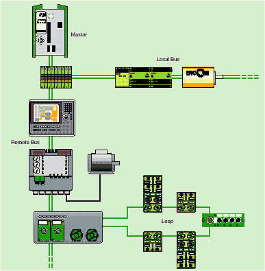 ระบบบัสประกอบด้วยส่วนต่างๆ หลายส่วน เช่น อุปกรณ์โลคัลบัส (local bus device) และโมดูลเทอร์มินัล (terminal module)