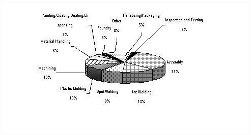 รูปที่ 1 ประเภทของอุตสาหกรรมที่ใช้หุ่นยนต์
