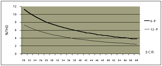 ชนิด 6 พัลซ์ มีค่า % THDV มากกว่า 5% ถ้าค่า SCR น้อยกว่า 45 และสำหรับโหลดคอนเวอร์เตอร์ชนิด12 พัลซ์ ถ้าค่า