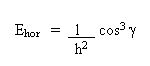 สำหรับพื้นผิวแนวนอน มักจะเหมาะสมกว่าที่จะเปลี่ยนสูตรข้างบนนี้ โดยเปลี่ยนจากระยะทางระหว่างแหล่งกำเนิดแสงเหนือพื้นผิว (d) เป็นความสูง (h)