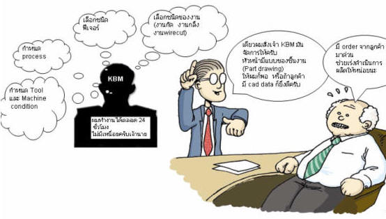 สำหรับวิศวกรหรือผู้ที่ผลิตชิ้นส่วนไม่ว่าจะเป็นชิ้นส่วนประกอบของเครื่องจักร หรือการสร้างแม่พิมพ์ คงจะรู้จักกันดีกับคำว่า CADCAM หรือ การนำคอมพิวเตอร์มาใช้ในการออกแบบ(CAD) และช่วยในการผลิต(CAM)ไม่มากก็น้อยแต่คงจะมีไม่น้อยที่อาจจะยังไม่รู้จักกับคำว่า KBM หรือ Knowledge Base Management ซึ่งถือว่าเป็นการเปลี่ยนแปลงอีกขั้นหนึ่งของซอฟท์แวร์ด้านCAM ก็ว่าได้ พูดง่ายๆก็คือถ้าเรานำ KBM มาผนวกเข้ากับ CAM ก็เหมือนกับติดเครื่องยนต์เทอร์โบให้กับรถยนต์แถมเพิ่มคนขับรถให้ด้วย หรืออีกนัยหนึ่งถ้ามีแต่CAM ก็เหมือนมีแค่รถยนต์ที่ไม่มีคนขับ รถก็ไม่สามารถขับเคลื่อนให้วิ่งไปไหนต่อไหนได้ถ้าไม่มีคนขับ แต่ถ้ามี KBM ก็เหมือนกับได้รถยนต์แรงๆและก็คนขับรถที่รู้ทางเป็นอย่างดีมาให้โดยที่เราเพียงแค่สั่งให้เจ้าKBM ตัวนี้ว่าจะไปที่ไหนๆก็พอ หลายคนอาจยังสงสัยแล้วว่ามันเกี่ยวข้องอะไรกับการผลิต ผมจะขอสมมติว่าถ้าเจ้านายสั่งให้ผลิตชิ้นงานชิ้นหนึ่งโดยที่เรามีซอฟท์แวร์CADCAM ,Tool ,part drawing และเครื่องจักรซีเอ็นซีไว้พร้อมแล้ว ขั้นตอนการทำงานถ้าปราศจากKBMจะเป็นรูทีนซ้ำๆดังต่อไปนี้