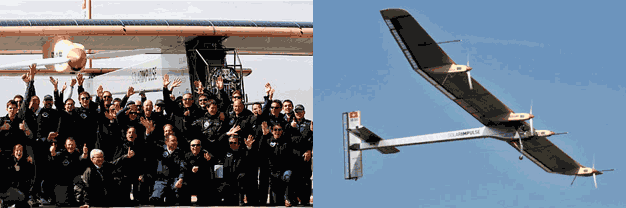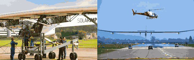 นายเบอร์ทรองค์ พิคคาร์ด ผู้ที่เคยบังคับบอลลูนรอบโลกมาแล้ว และนายอังเดร บอร์ชเบิร์ก 2 นักบินที่ขึ้นบินทดลองการบินที่ยาวนานกว่า 1 ชั่วโมง 30 นาที ได้กล่าวถึง พลังงานที่รับจากแสงอาทิตย์ สู่ แบตเตอรี่ลิเที่ยม น้ำหนัก 400 กิโลกรัมจากเซลล์รับ