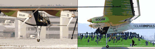 เครื่องบินพลังงานแสงอาทิตย์ลำนี้ชื่อว่า โซล่า อิมพัลส์ (Solar Impulse)ถูกนำทดลองขึ้นบินที่สวิสเซอร์แลนด์ เมื่อวันที่ 7 เมษายน 2553 บริเวณสนามบินในเขต พาร์เยิร์นเน่ (Payerne) มูลค่าเครื่องบินต้นแบบกว่า 3,500 ล้านบาท โดยคณะนักประดิษฐ์ของ เบอร์ทรันด์ พิคคาร์ด (Bertrand Piccard) สวิสเซอร์แลนด์