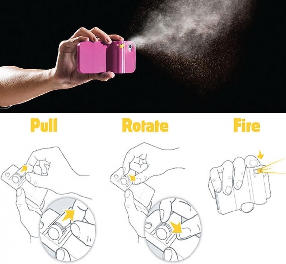 สกอต แมคเฟอร์สัน เจ้าของแบรนด์ Spraytect จากสหรัฐอเมริกา ได้คิดค้นเคสพิเศษสำหรับใส่ไอโฟน ซึ่งเป็นหนึ่งในสมาร์ทโฟนที่ได้รับความนิยมที่สุดในขณะนี้ เคสที่ว่านี้ฝังขวดสเปรย์พริกไทยขนาดกะทัดรัดไว้ ด้านหลังเพื่อให้สามารถกดฉีดใส่ผู้ร้ายได้หากเกิดการจู่โจมฉุกเฉิน โดยออกแบบให้ดูทันสมัย เหมาะแก่การพกพา นอกจากนี้เมื่อใช้สเปรย์จนหมดแล้ว ยังสามารถถอดทิ้งและใส่ขวดใหม่เข้าไปได้อีกด้วย ซึ่งทั้งเคสและสเปรย์สามารถสั่งซื้อได้จากเว็บไซต์ของบริษัทเท่านั้น