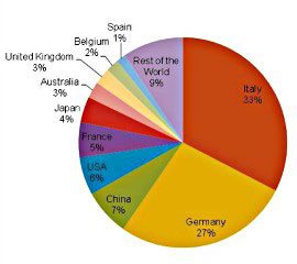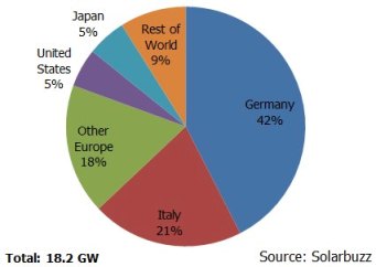 ในปี 2011 ตลาดของแผงเซลแสงอาทิตย์ที่ใหญ่ที่สุดในโลกคือ Italy มาโค่นแชมป์ Germany ลงไปได้