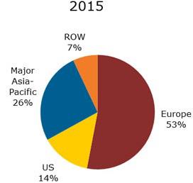 ในปี 2015 คาดว่าตลาดของแผงเซลแสงอาทิตย์ของโลกจะเปลี่ยนไปเป็น