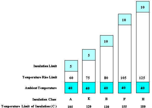 อุณหภูมิเพิ่มทุก10องศา คิดจากอุณหภูมิห้องสูงสุด40องศา ทำให้อายุของฉนวนลดลงประมาณครึ่งหนึ่ง โดยอายุการใช้งานของฉนวนสัมพันธ์กับอุณหภูมิเพิ่มดังรูป