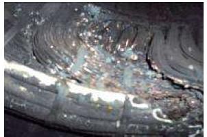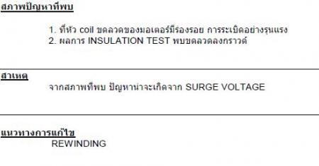 ขอให้ความคิดเห็นอย่างนี้ครับ จุดที่เสียหายเป็นจุดที่แน่นอนว่า มากกว่า 70 เปอร์เซนต์ของมอเตอร์ที่เสียหายจากขดลวดไหม้จะเกิดที่บริเวณนี้ และบริเวณนี้เราจะเรียกว่า End Coil ซึ่งก็คือบริเวณที่ยื่นออกจากแกนเหล็ก เพราะบริเวณนี้จะไม่มีสล๊อตคอยควบคุมรูปร่าง หรือจับยึด ทำให้เมื่อมีการสตาร์ท หรือเกิดการเปลี่ยนแปลงของโหลดจะเป็นบริเวณที่เกิด Stress หรือแรงกระทำมากที่สุด จากภาพที่เห็นสภาพโดยรวม มอเตอร์ตัวนี้น่าจะมีอายุการใช้งานมานาน เพราะดูได้จากสายหลีดมีสภาพที่แห้งกรอบ ซึ่งทำให้เป็นไปได้อย่างมากที่สภาพฉนวนโดยรวมเสื่อมสภาพ และแน่นอนว่าจุดที่มีแรงกระทำมากกว่าย่อมที่จะมีโอกาสเกิดความเสียหายมากกว่า ซึ่งก็ได้แ่ก่บริเวณ End Coil |