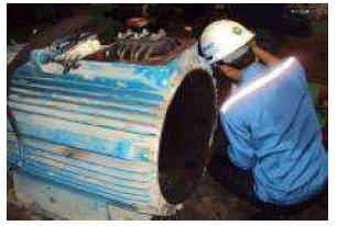 ที่โรงงานใช้ AC Motor ขนาด MOTOR AC FLSC 355LC4 B3 400V 50HZ 1488RPM 355KW ขับโหลด Blower อาการดังรูปที่แนบมาครับ |