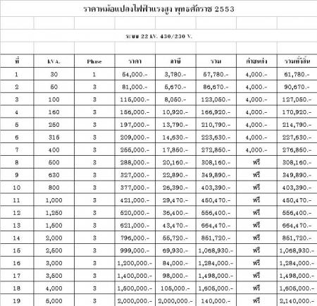 สอบถามการประมาณราคาหม้อแปลง