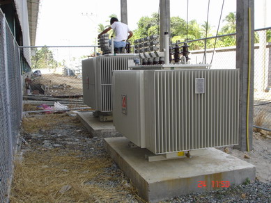 ทำKW ให้เป็น KVA ก็จะได้rate หม้อแปลง 3phase pf~0.85 KVA= KWxpf ,=74.62x0.85 63kva เผื่อ อนาคต สัก1.5 เท่า = 63x1.5=95KVA สั่งหม้อแปลงที่มีขาย 100 KVA ช่างวรเดช 0839921379 |