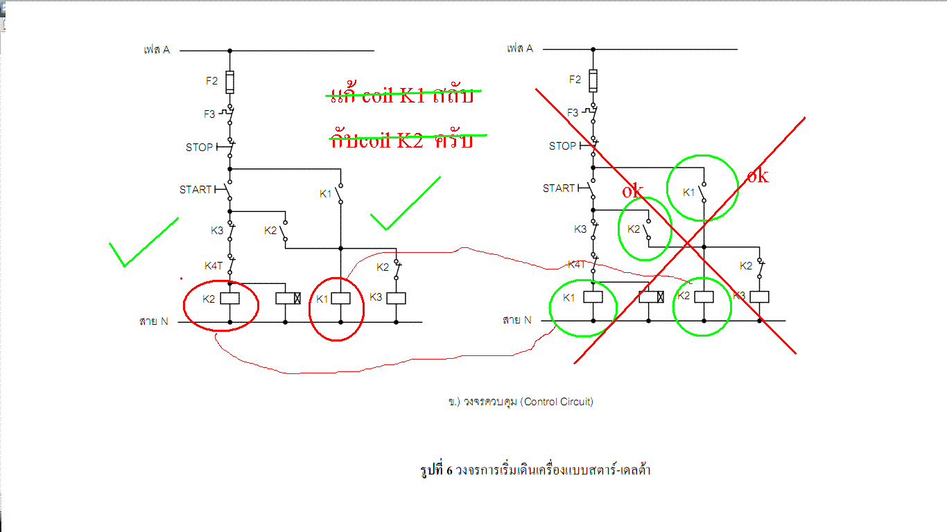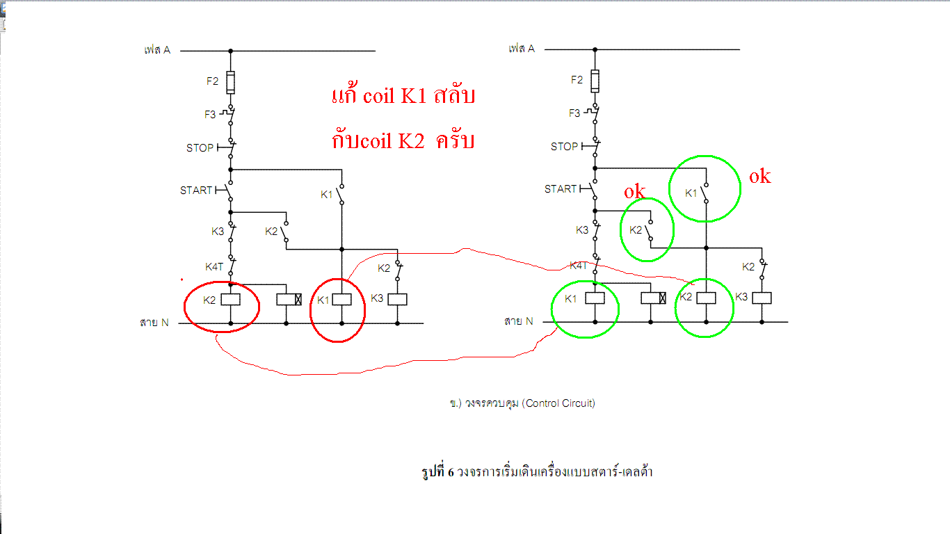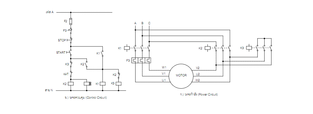 ผมขอออกความเห็น การเขียนแบบคอนโทรล ตาม คห9 เห็นด้วย ที่ให้เลข K1-3 ตามสำดับ sequence การเขียนสวิทช์ ผมเรียนมาก็เขียนเหมือนท่าน แต่เมื่อทำงานจริงผมชอบเขียน สวิทช์/คอนแทค หันลง(เหมือน overload) เวลาเดินสาย wiring, ก็ไล่ตั้งแต่คอมมอน common ลงมาเลย ดูวงจรในเว็บนี้... http://www.lpc.rmutl.ac.th/elcen/elearning/motorcontrol/module12/star_delta.html ดูที่โอเวอร์โหลด สามารถสวิงคอนแท็คไปทางขวาได้เลย ก็ทำไมเราไม่เขียนสวิทช์ต่างๆ ให้เหมือน Overload ไปเลยจะดีกว่ามั้ย ผมต้องขออนุญาต อจ.บุญมี KMITNB ด้วยนะครับ ครูผู้สอนผมให้สามารถทำมาหากินได้จนบัดนี้ ---worldair-kmitnb |