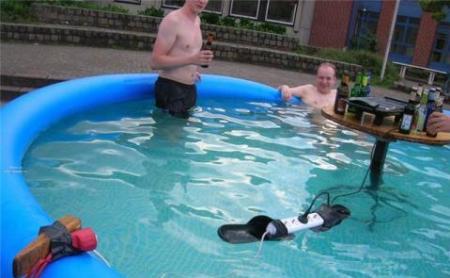 เพื่อนๆดูภาพนี้แล้ว ไม่ทราบว่าคิดอย่างไร / คุณคิดว่าเขาไม่กลัวไฟฟ้า หรือว่ารู้เท่าไม่ถึงการ เขาเอาปลั๊กเสียบเตาย่างเสียบรองเท้าแตะรอยน้ำ แถบดืมเบียร์เล่นน้ำแบบสบายใจ เทพจริงๆ |