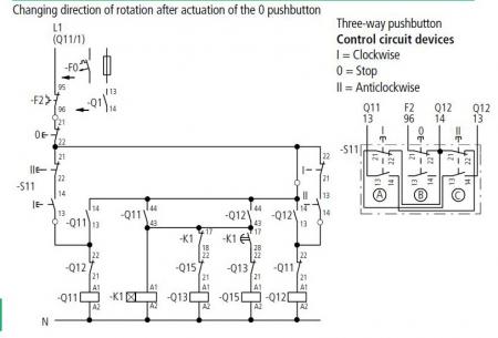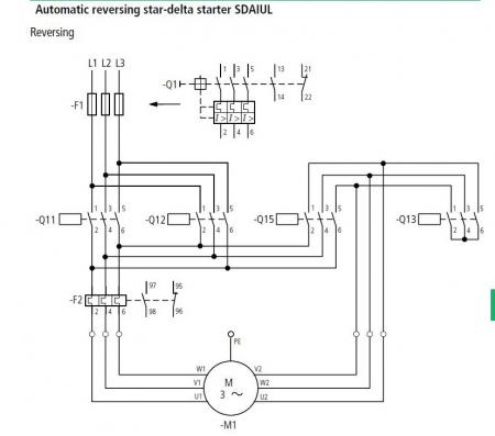 ในวงจร การสตาร์ท สตาร์-เดลต้า แล้วสามารถเลือกทางหมุนได้ โดยใช้ แมก 4 ตัว เข้าใจว่าการออกแบบให้ แมกสตาร์ ทำงานก่อนจะทำให้ต้องออกแบบวงจรที่ยุ่งยาก เลยต้องออกแบบให้ตัวเมน ทำงานก่อน จะทำให้ง่ายขึ้น ส่วนการออกแบบที่ทำให้ตัวสตาร์ ทำงานก่อนของวงจร สตาร์ เดลต้าแบบธรรมดา เป็นข้อสังเกตุของผม ที่มักจะพิจารณาดูวงจรคอนโทรล ที่มักติดมากับ แคตตาล๊อกผู้ผลิตแมกเนติกทั้งหลาย ส่วนเรื่องสปาร์คเป็นข้อสันนิษฐานของผมที่เอามาอ้างอิงกับการทำงานดังกล่าว ซึ่งผมยังไม่เจอเลยว่า ผู้ผลิตรายไหนออกแบบให้ ตัวเมนทำงาน่ก่อน ยกเว้นที่อื่นที่ไม่ใช่มาจากแหล่งผู้ผลิต แมกเนติก วงจรด้านล่างและที่ผมโพสไปก่อนหน้านี้ ผมเอามาจาก แคตตาล๊อกของ Moller ครับ |